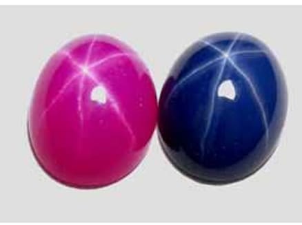 UNUSUAL PROPERTIES: Synthetic star sapphire exhibits the optical phenomenon called asterism, a star-like pattern created on the surface of a gemstone when light encounters parallel fibrous, or needle-like, inclusions within its crystal structure. Light that strikes the inclusions within the gem reflects off of the inclusions, creating a narrow band of light. When two or more intersecting bands appear, a star pattern is formed.
